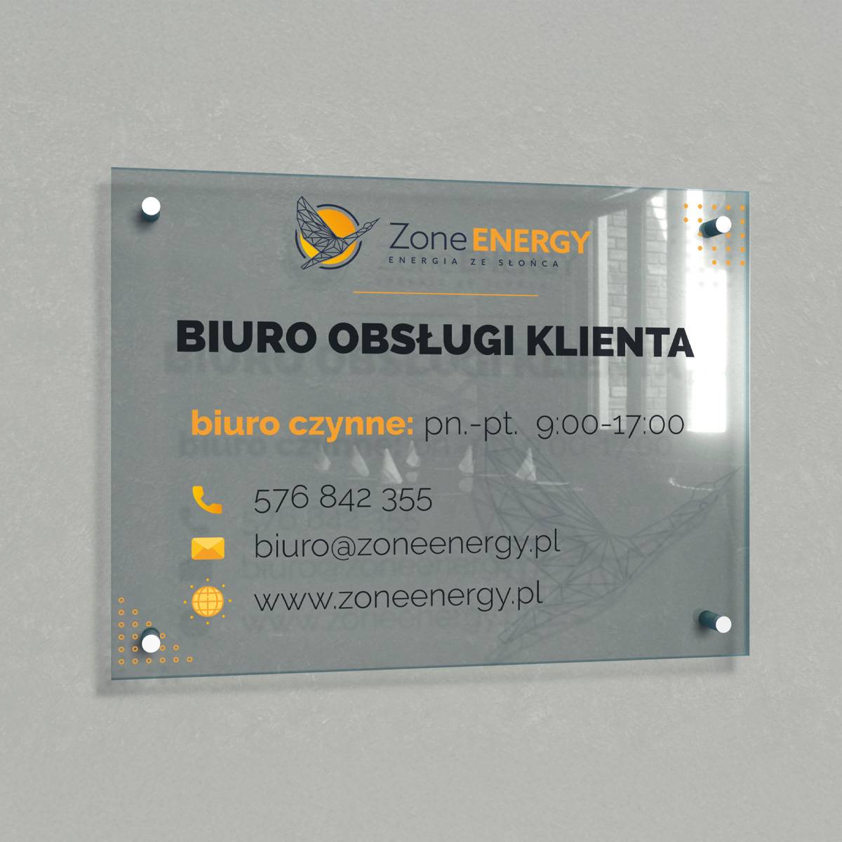 Przykład kompleksowej obsługi identyfikacji wizualnej dla firmy Zone Energy, gdzie każdy element – od materiałów promujących, po oklejanie budynków – został zaprojektowany, by podkreślać unikalność marki i angażować odbiorców w różnych przestrzeniach.