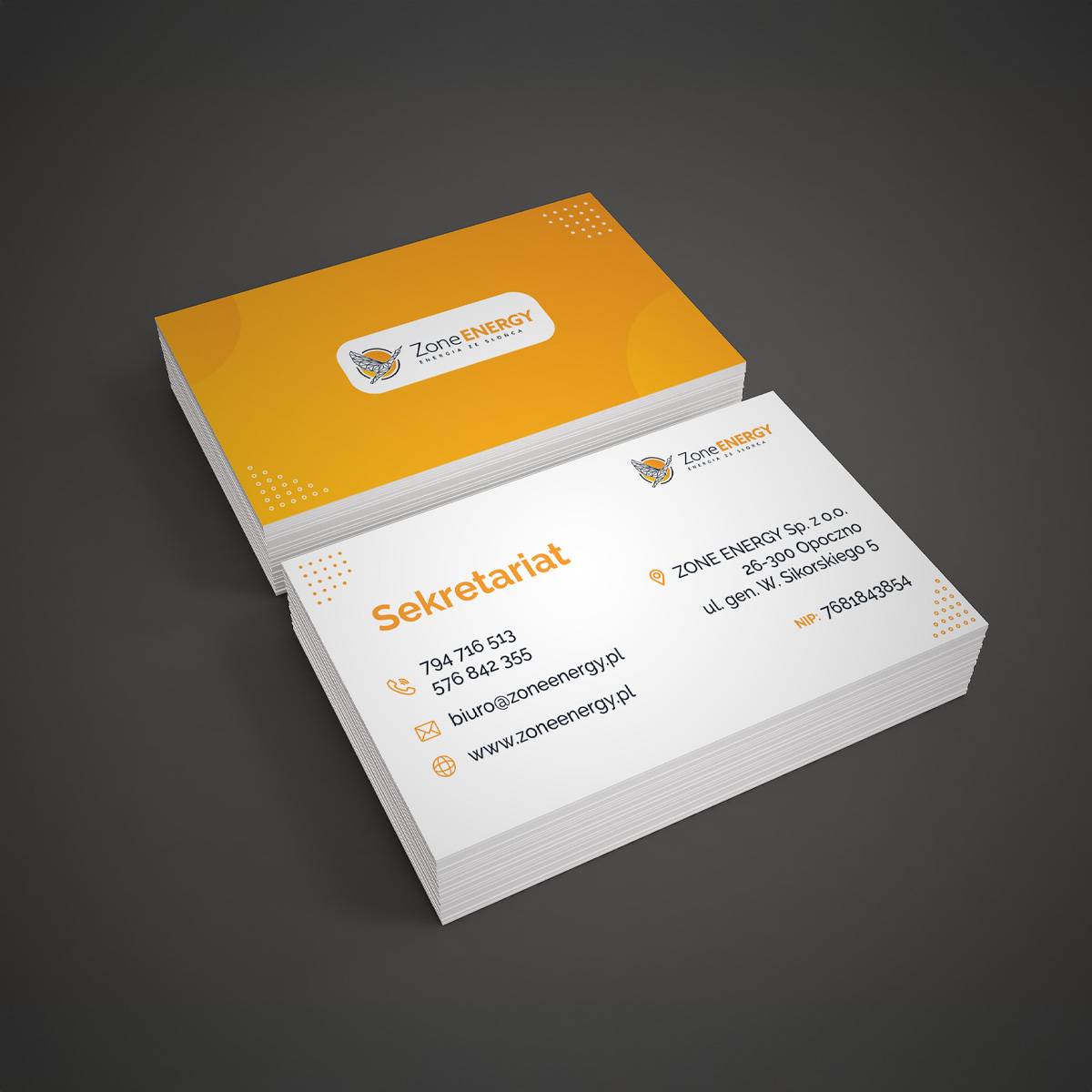 Wizytówki, Papier Firmowy i Teczki – Eleganckie projekty materiałów biurowych, które wzmacniają wizerunek Zone Energyjako profesjonalnej i wiarygodnej firmy.